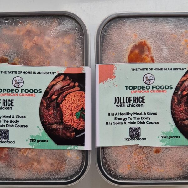 Savor the rich flavor of TopdeoFoods Jollof Rice paired with mouthwatering Spicy Chicken—a perfect blend of heat, spice, and deliciousness! 🍗🍛